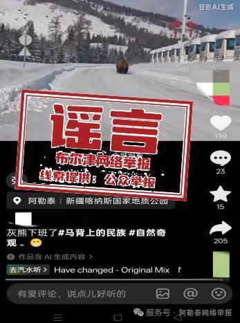 近日,有网民在酬酢平台发布视频,宣称“新疆喀纳斯出现棕熊”“阿勒泰碰到熊大了”。经关连部门核查证据,视频为AI生成,并非着实拍摄画面,属地未发生此类“熊出没”事件,该讯息属于空幻坏话信息。